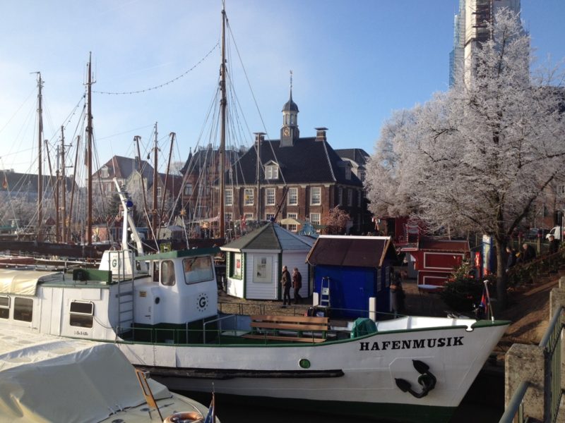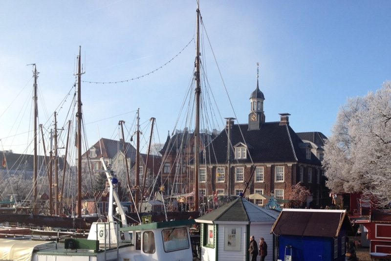 Blick auf die Leeraner Innenstadt und den Museumshafen